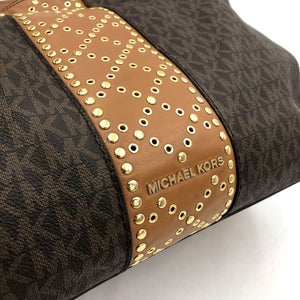 Michael Kors 'Raven' Signature Print Shoulder Bag w/ Leather Trim & Studs (+COA)