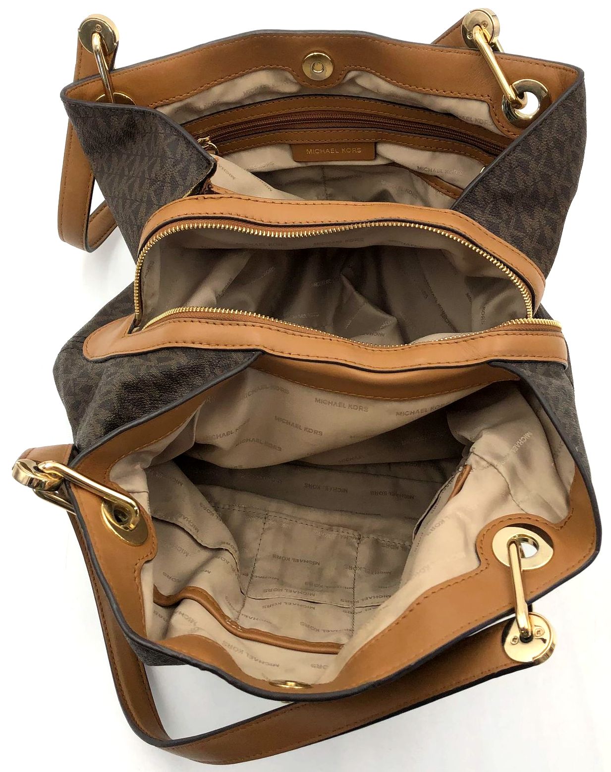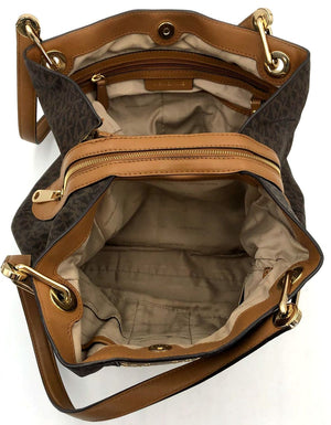 Michael Kors 'Raven' Signature Print Shoulder Bag with Leather Trim & Gold-Tone Studs/Hardware