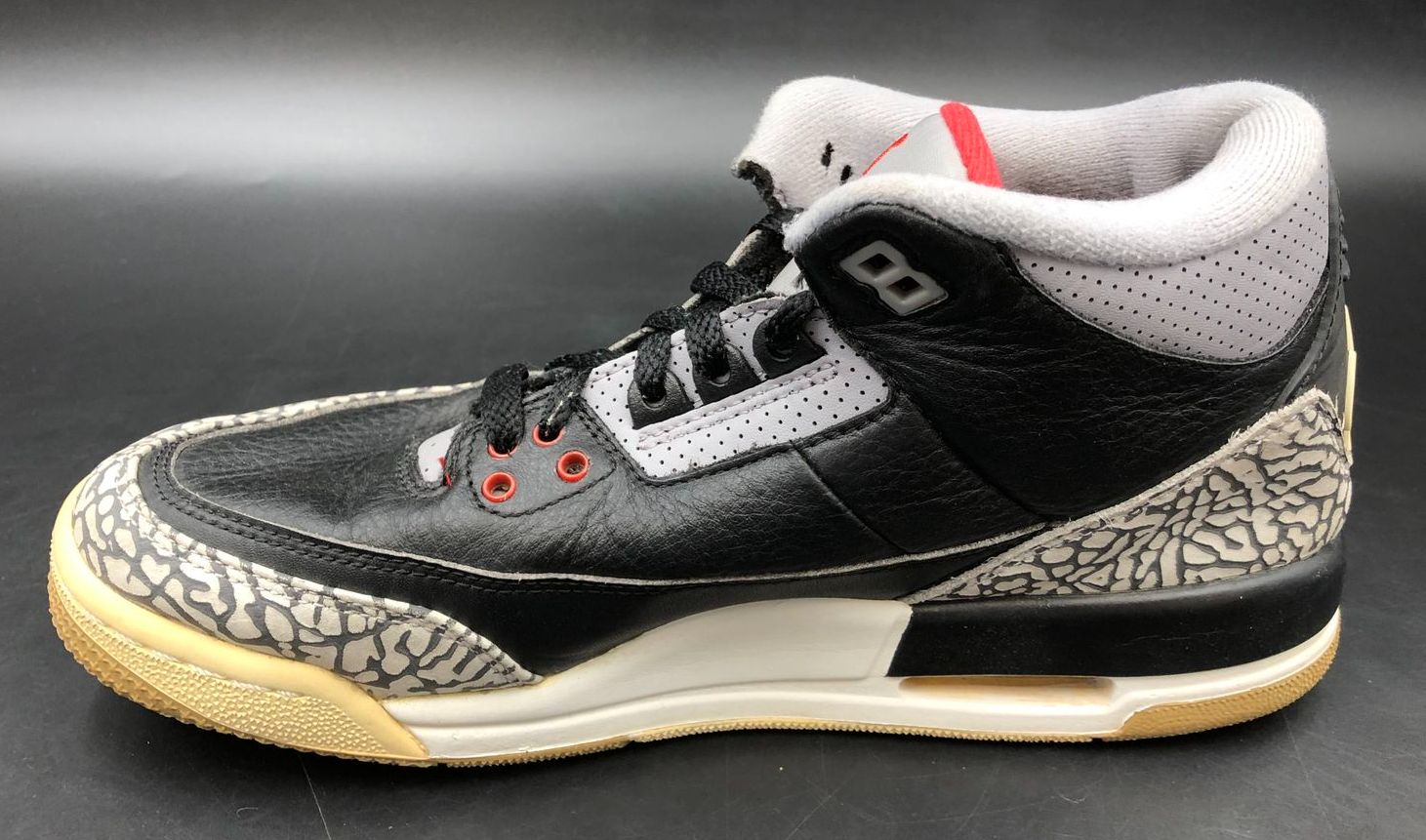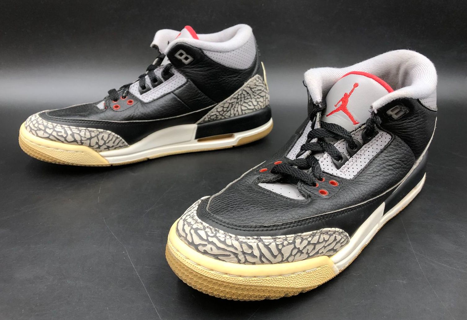 Nike Air Jordan 3 Retro OG BG 'Black Cement Grey' & Red Sneakers - Size 7Y