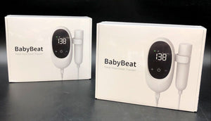 Description: This is a lot of two brand new, factory-sealed BabyBeat Fetal Heartbeat Trackers. These units are designed for at-home use by expectant mothers and they operate using the Doppler effect with ultrasound to detect the fetal heartbeat, providing an audible simulation and displaying the heart rate in beats per minute (BPM). These products are made in the USA and regulated by the FDA to ensure safety. Each unit comes in its original, unopened retail packaging as pictured.