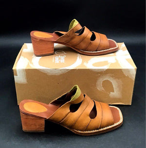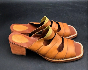 Sergio Tomani Brown Leather Cutout Block Heel Mules Sandals Womens Size EU 40