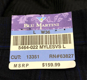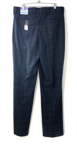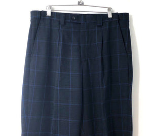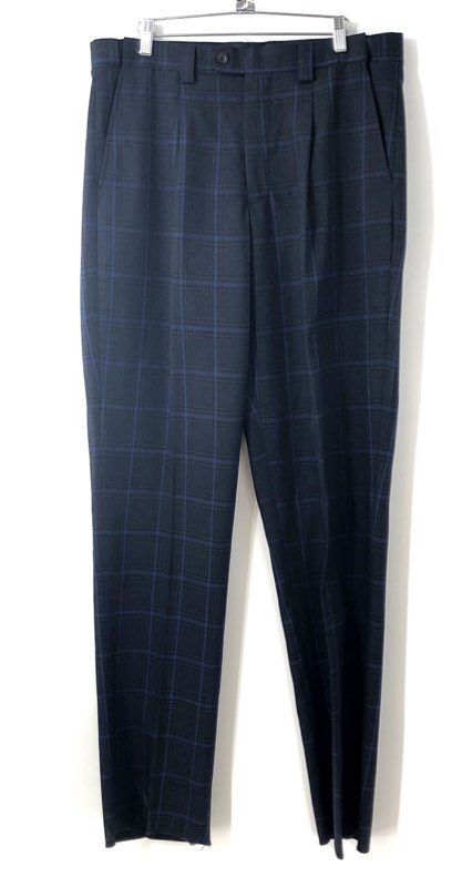 Blu Martini Men's Navy Blue Plaid Pleated Straight Leg Dress Pants Sz 36 NWT