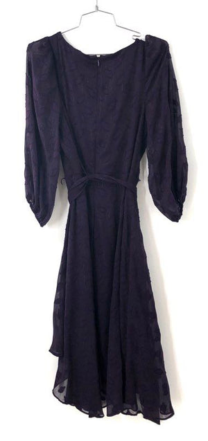 DKNY Women's Purple Metallic Clip Dot Bishop Sleeve Tie Waist Dress NWT Size 8