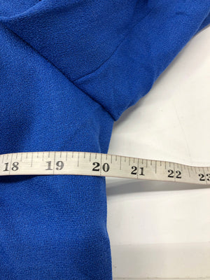 A sophisticated and complete professional look with this new-with-tags three-piece pant suit set from Kasper. This ensemble includes a vibrant blue open-front blazer, classic black straight-leg trousers, and a coordinating striped sleeveless shell top. Perfect for the office or professional events, this set offers a polished and coordinated outfit right out of the box.