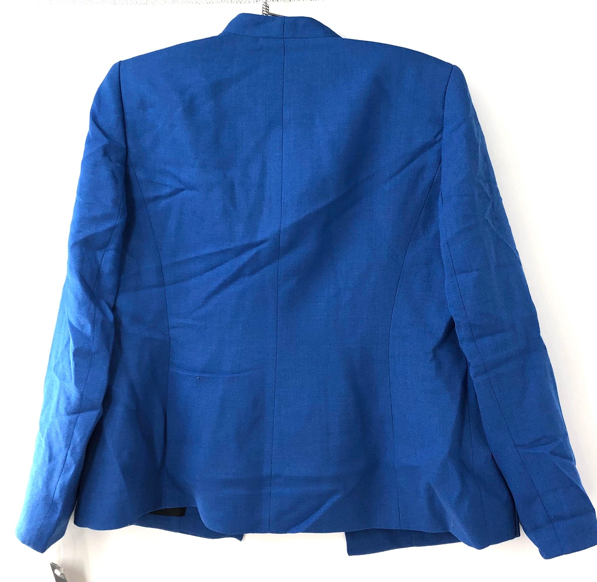 • Blazer features a collarless, open-front design with two front pockets