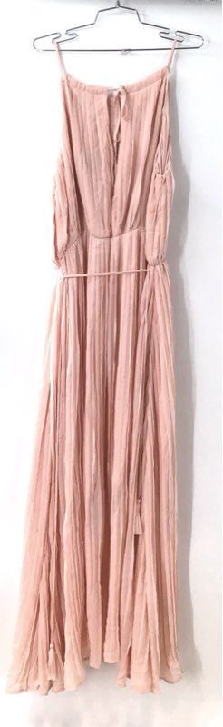 Madison Women's Pink Pleated Spaghetti Strap Maxi Dress Belted NWT Sz XL
