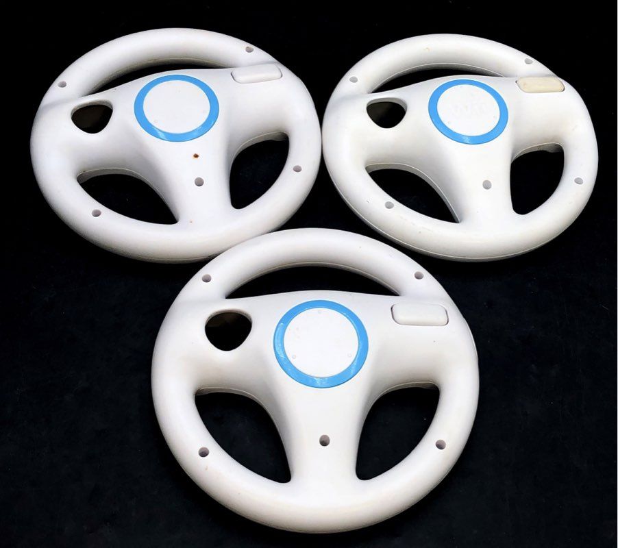 This is a lot of three official Nintendo Wii Wheel accessories. Designed to house the Wii Remote, the Wii Wheel enhances gameplay for racing titles like Mario Kart Wii by providing a more intuitive and immersive steering experience. OEM Nintendo accessories are sought after by players for their precise fit and durable construction compared to third-party alternatives.