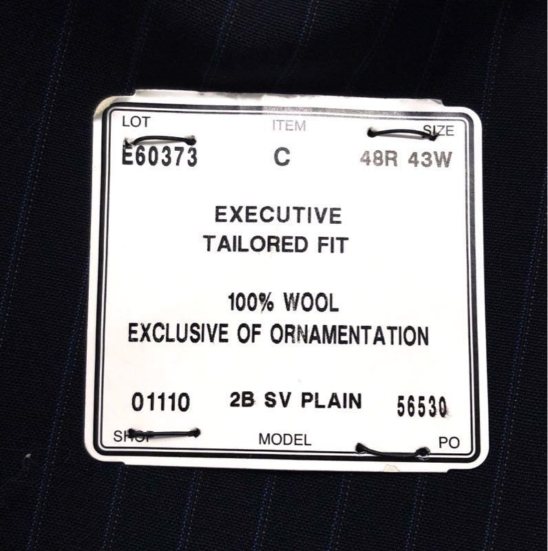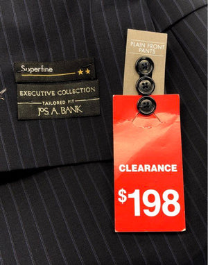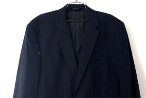 A classic men's sport coat from the Jos. A. Bank Executive Collection, new with tags. This blazer features a sophisticated tailored fit and is crafted from 100% superfine wool in a navy blue pinstripe pattern. Designed with a traditional two-button front closure and a single vent in the back for a comfortable fit.