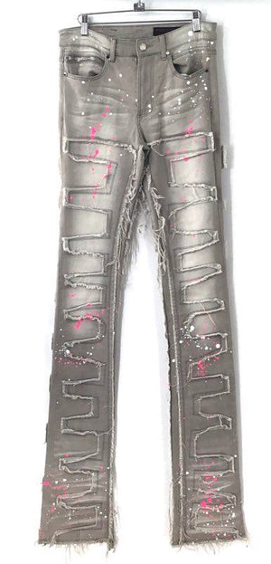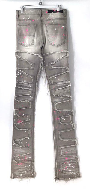 RSM 225 Hallie Gray Distressed Paint Splatter Jeans