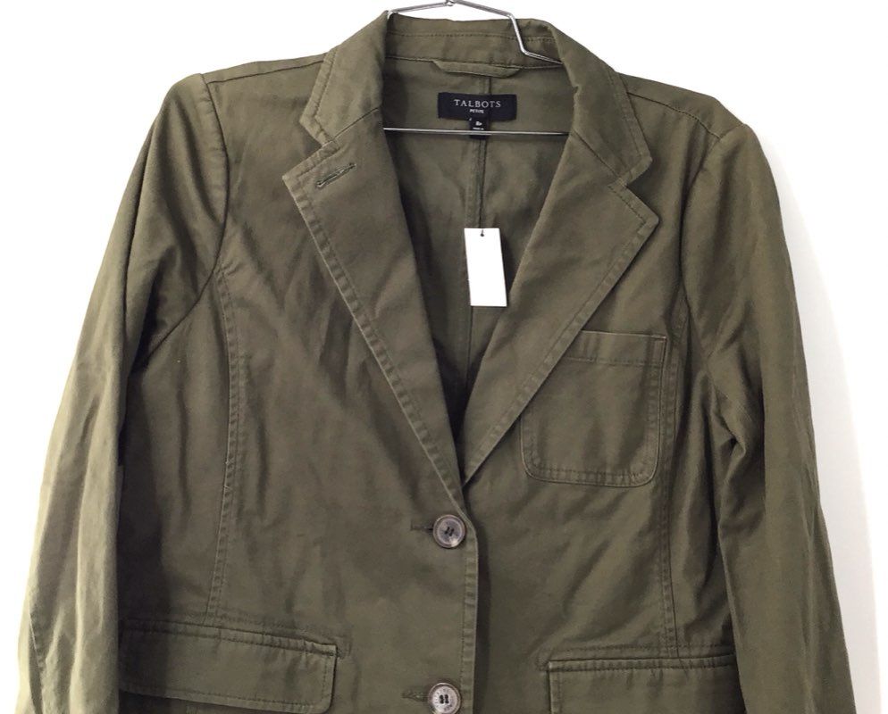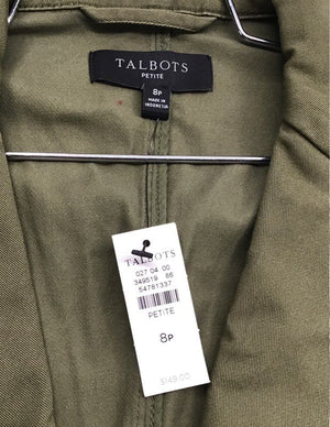 Talbots Women's Blazer Jacket Olive Green Cotton Blend Casual NWT Size 8P
