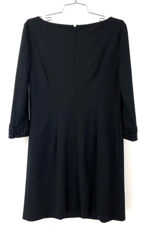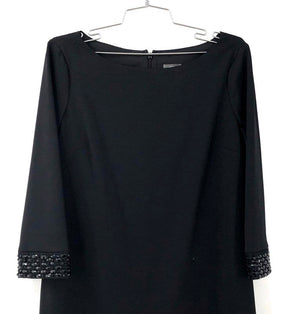 Vince Camuto Women's Sheath Dress Black Beaded Cuff Boat Neck NWT Size 8